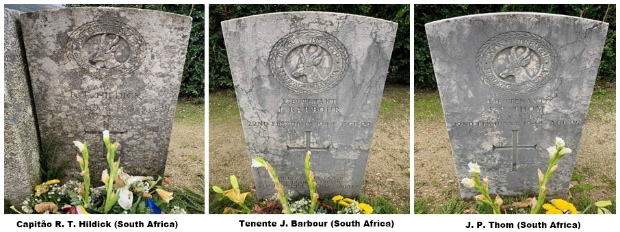 As pedras tumulares dos seis malogrados militares, quatro sul africanos e dois ingleses.